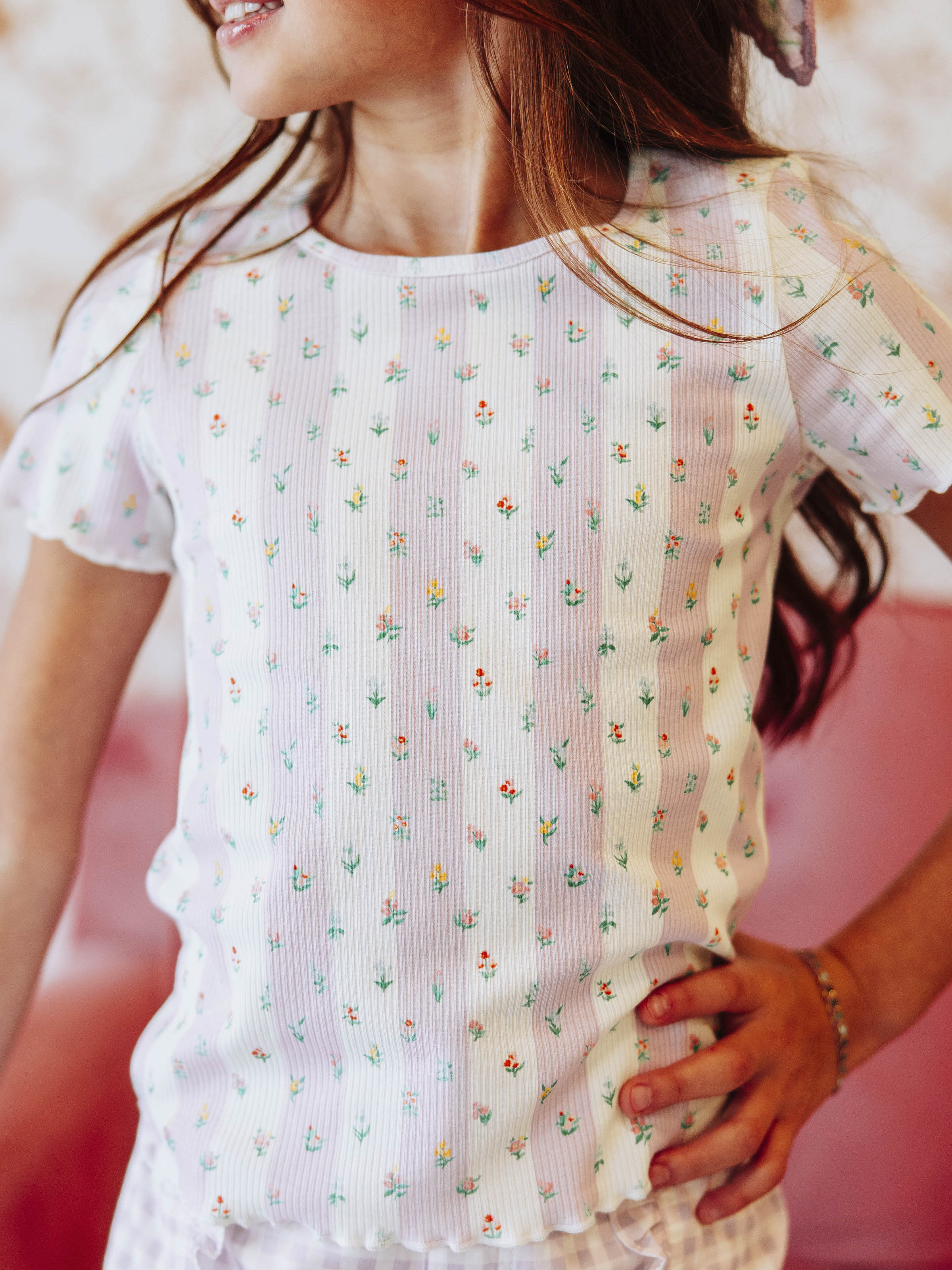 Frilled Sleeve Shirt - Floral Drop Stripe